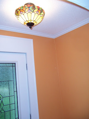Doesn't that just say Fall? I LOVE it. The light isn't new (it was one of Ed's amazing bargain finds, though!), but it goes so nicely with the paint. The color is actually called "marigold," so it will be a good summer color as well. The entry is tiny, so it's not a lot of color, but every time I see it it makes me feel warm and happy!